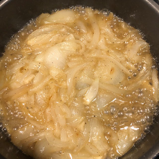 Heat the butter and oil in a skillet. While it's heating, slice the onion. Add the onion to the skillet and sprinkle with some salt and pepper. Let cook and stir occasionally until the onions are translucent and some are browning/burning to the bottom. Add the sugar and about 1/2 C. of water. Let the onions cook down until the the water is evaporated. Taste to make sure it is sweet enough while they are cooking down. If not, add more sugar.